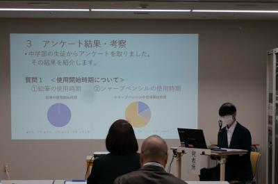 緊張した様子もみられましたが、自分がまとめた内容をしっかりと伝えることができました。また、質疑応答では、質問についてじっくり考えて答えていました。