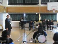 最初に、校長先生から「生活リズムをくずさないこと」「感染症対策を行うこと」など冬休み中に守ってほしいことについて、児童生徒のみなさんにお話がありました。