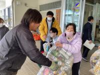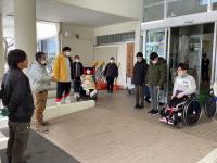 中学部空き缶引き渡し(作業学習)