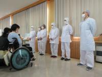 調理員の方々に対して、小学部・中学部・高等部の代表者がそれぞれ給食に対するお礼のことばを伝え、各学級で制作した「ありがとうカード」をお渡ししました。