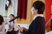 気温が低く、寒い中でのスタートでしたが、全校朝会では校長先生に元気に挨拶する様子が見られました。