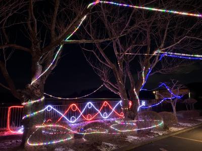 学校の改修工事を担当してくださっている東復建設株式会社、株式会社階上設備工業、株式会社京谷電気の方々が駐車場にイルミネーションを設置してくださいました。